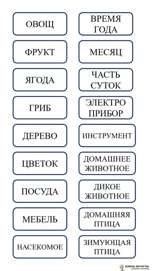 Нажимайте на фотографии и играйте с детьми в игры, которые мы подобрали. Игры - лучший вариант развития детей Игра «Категории» Е.К.Круогла Подбери подходящее слово: